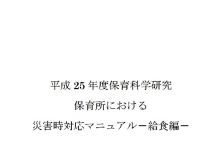 保育所における災害発生に備えた備蓄や、それらを用いた訓練のあり方、災害発生後の対応等を具体にまとめたマニュアルです。