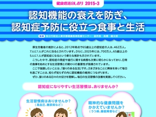 こうした中で、認知症の発症や進行に関する病態も次第に明らかになっており、日常の食事を始めとする生活習慣との関わりの重要性が指摘されています。強調したいことは、「張りのある生活」です。さまざまなものに興味を持って毎日を過ごすことは、認知機能の維持につながります。ぜひ、張りのある日々の大切さを理解し、毎日の生活習慣の改善を実践してください。
