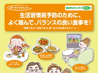 バランスの良い食事を選び、よく噛んで適切な量を食べることは、メタボリックシンドロームなどを予防する上でも大切です。食べる機能を維持するために、成人の食べる力をサポートしましょう。