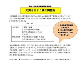「日本摂食・嚥下リハビリテーション学会嚥下調整食分類2013」の活用推進リーフレットです。