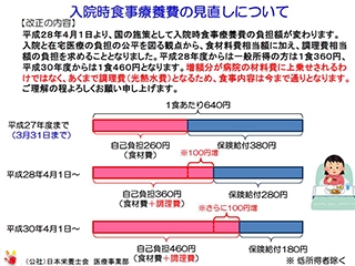 平成28(2016)年4月からの入院時食事療養費の自己負担額の変更に伴う、患者さんへの説明資料です。