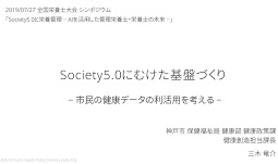 講演資料につきましては、無断での複写・転用・転載はご遠慮ください。講演名:Society5.0にむけた基盤づくり− 市民の健康データの利活用を考える−