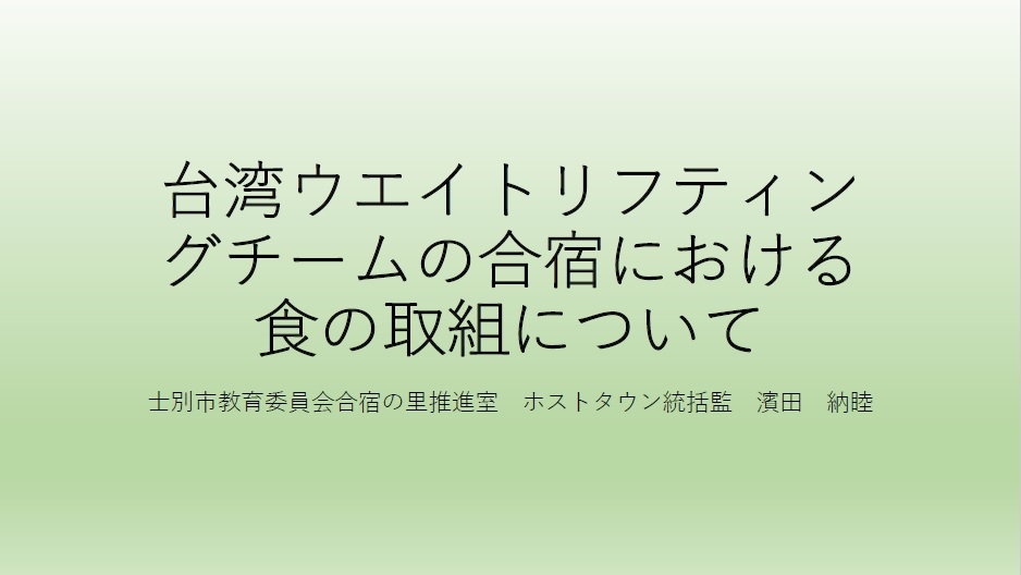 講演資料につきましては、無断での複写・転用・転載はご遠慮ください。講演名:台湾ウエイトリフティングチームの合宿における食の取組について