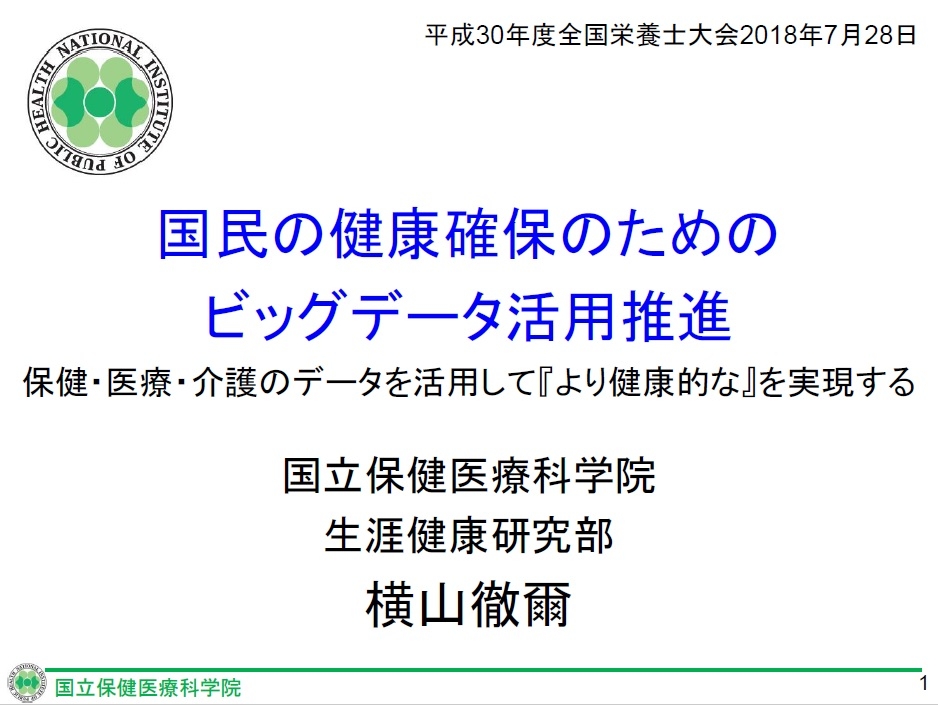 講演資料につきましては、無断での複写・転用・転載はご遠慮ください。講演名:国民の健康確保のためのビッグデータ活用推進―保健・医療・介護のデータを活用して『より健康的な』を実現する―