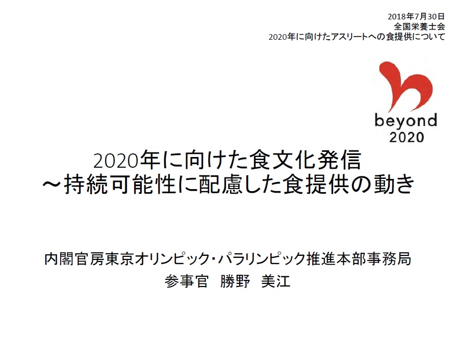 講演資料につきましては、無断での複写・転用・転載はご遠慮ください。講演名:2020年に向けたアスリートの食事提供について