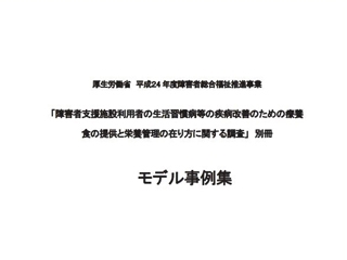 障害者支援施設おいて、疾病に応じた療養食が容易に提供できるよう先進的なモデルを収集し、個々の心身状況に対応した栄養管理を適切に行うことを目的とした事例集です。