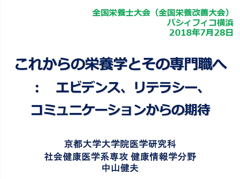 講師:中山健夫氏(京都大学大学院医学研究科副研究科長・社会健康医学系専攻長・健康情報学分野教授)