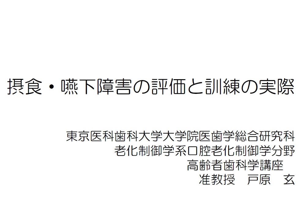講師:戸原玄氏(東京医科歯科大学大学院医歯学総合研究科老化制御学系口腔老化制御学講座高齢者歯科学分野准教授)