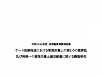 チーム医療を先駆的に行っている病院に対し、医療効果、医療安全、患者満足度の各視点で調査を実施し、管理栄養士が病棟での業務を行うことの有効性を検討した研究報告です。
