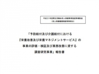 全国の介護保険施設における、介護の状況、食事の状況に関する調査を踏まえ、栄養ケア・マネジメントの実態を把握するとともに、利用者の予後における栄養マネジメントの関連を明らかにすることを目的として、多施設共同による大規模コホート研究を実施した報告書です。