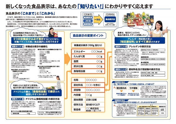 加工食品の容器包装には、栄養成分がどの位含まれているか、その食品がどのように製造され、どのように利用すれば良いかなどの基本情報が表示されています。これまで3つの法律に分かれていた食品表示のルールが、食品表示法としてまとめられ、より分かりやすくより活用しやすくなりました。