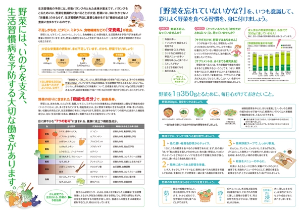 「野菜を忘れていないかな?」野菜が果たす大切な役割を知り、毎日の食生活の中で野菜を効率的に摂る習慣を身に付けましょう。